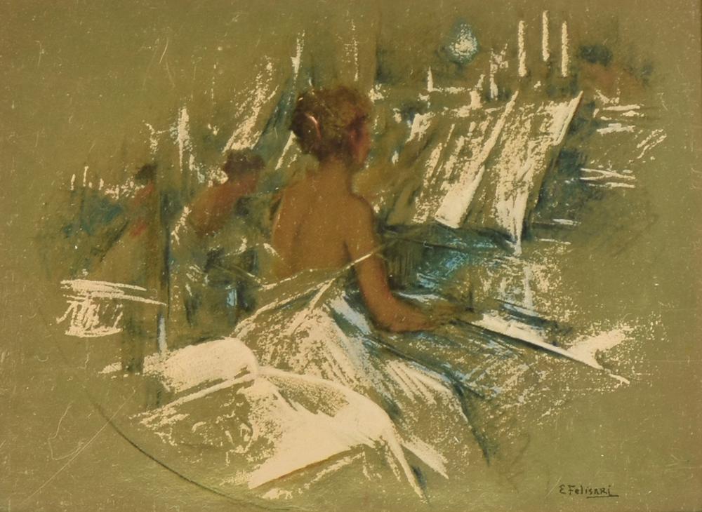 Enrico Felisari AL PIANO serigrafia su lamina metallica, cm 9x12 firma in lastra