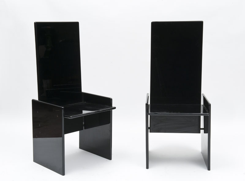 Kazuhide Takahama (1930 - 2010) - Coppia di sedie modello "Kazuki" in legno laccato nero. Produzione Simon, 1971 (lievi difetti) Bibliografia: G. Gramigna, Repertorio del design italiano 1950-2000 per l’arredamento domestico, Allemandi, Torino 2003, p. 190.