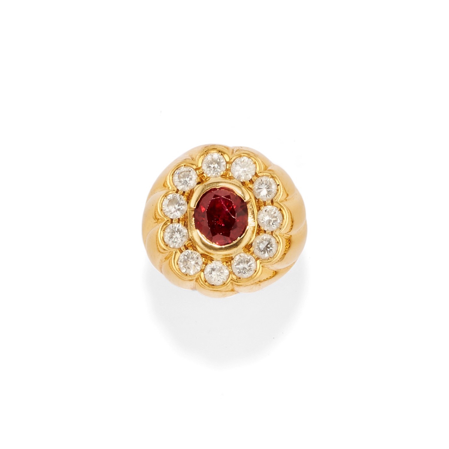 Lotto 5 | Anello con pietra rossa e diamanti