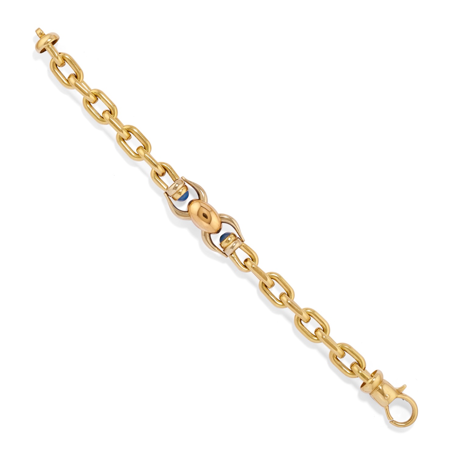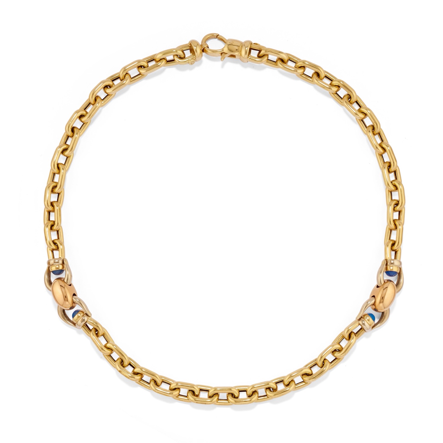 composta da collana e bracciale a catena, con inserti in pietre blu, se si uniscono i due elementi è utilizzabile anche come lunga collana.