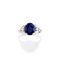 al centro zaffiro taglio ovale di ct 4,00 circa e diamanti taglio marquise per totale ct 0,50 circa.