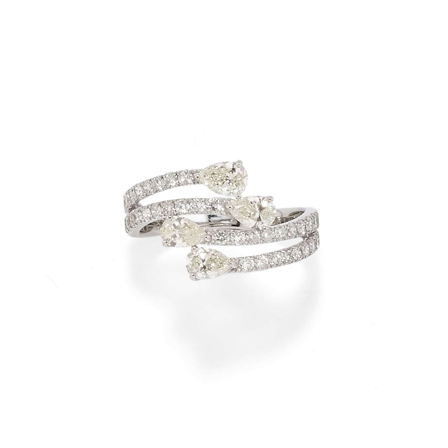 a contrariè, con terminali in diamanti gialli taglio goccia per totale ct 0,90 (caratura incisa) e riviere in diamanti taglio brillante per totale ct 0,60 (caratura incisa).
