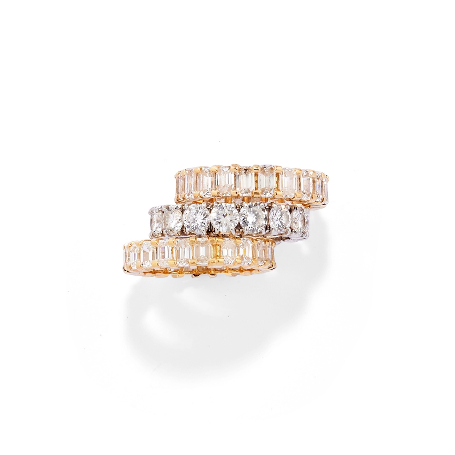 a tutto giro, con diamanti taglio brillante e rettangolare a contorno ottagonale per totale ct 10,00 circa.
