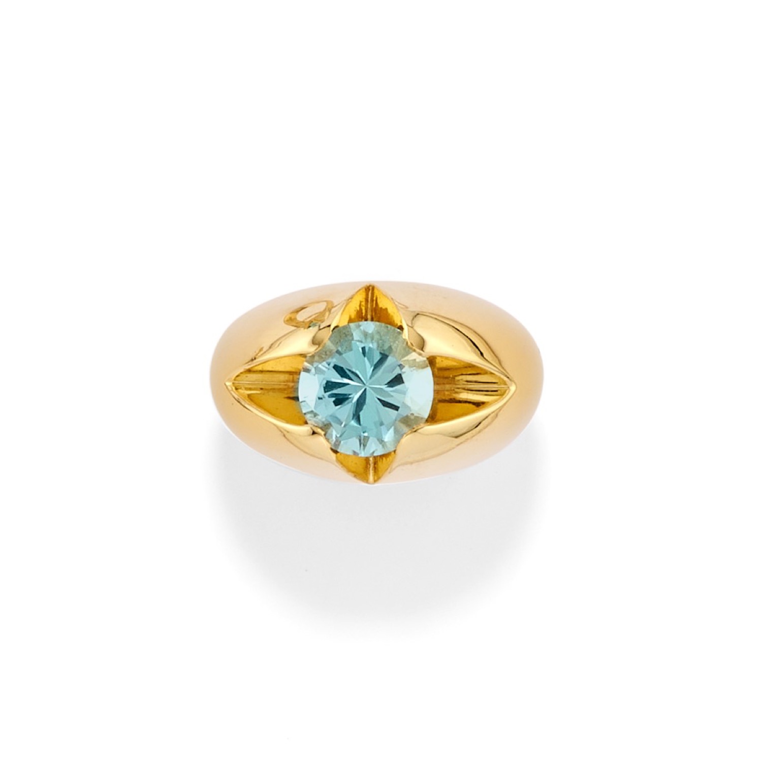 a uovo, con taglio a croce e al centro topazio azzurro taglio rotondo.