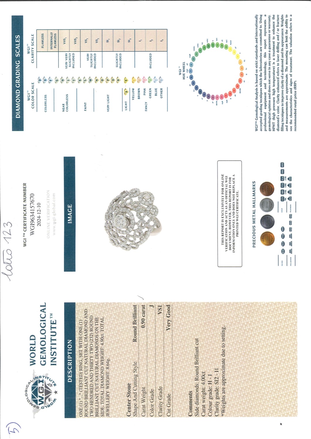 L'anello è accompagnato da certificato n. WGI9634157670 del 2024/12/10 World Gemological Institute.