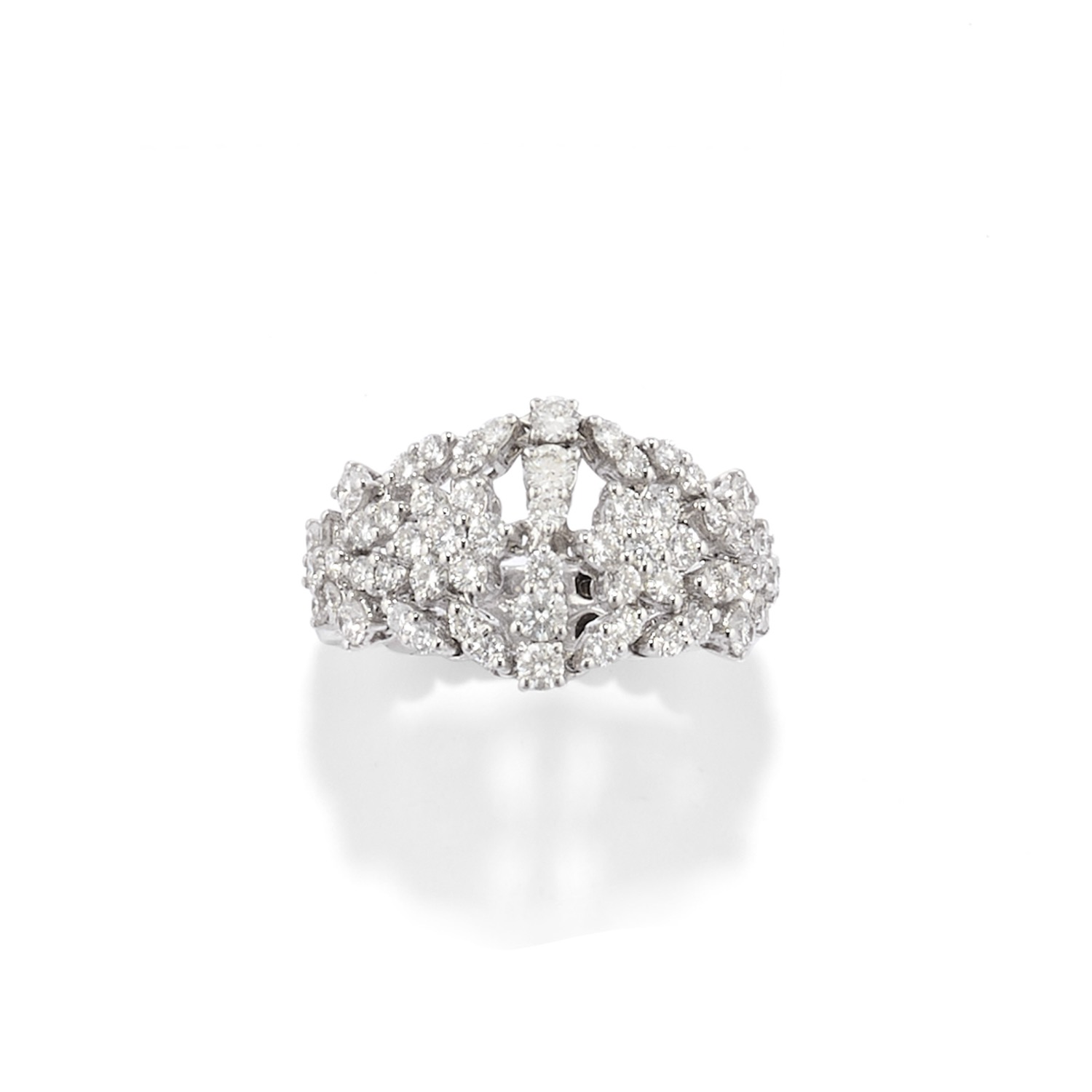 a fascia morbida, motivo floreale, decorata con diamanti taglio brillante.