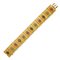 realizzato con maglie di forma rettangolare incise e a rilievo decorate al centro da motivi floreali in rubini, zaffiri e smeraldi taglio rotondo.