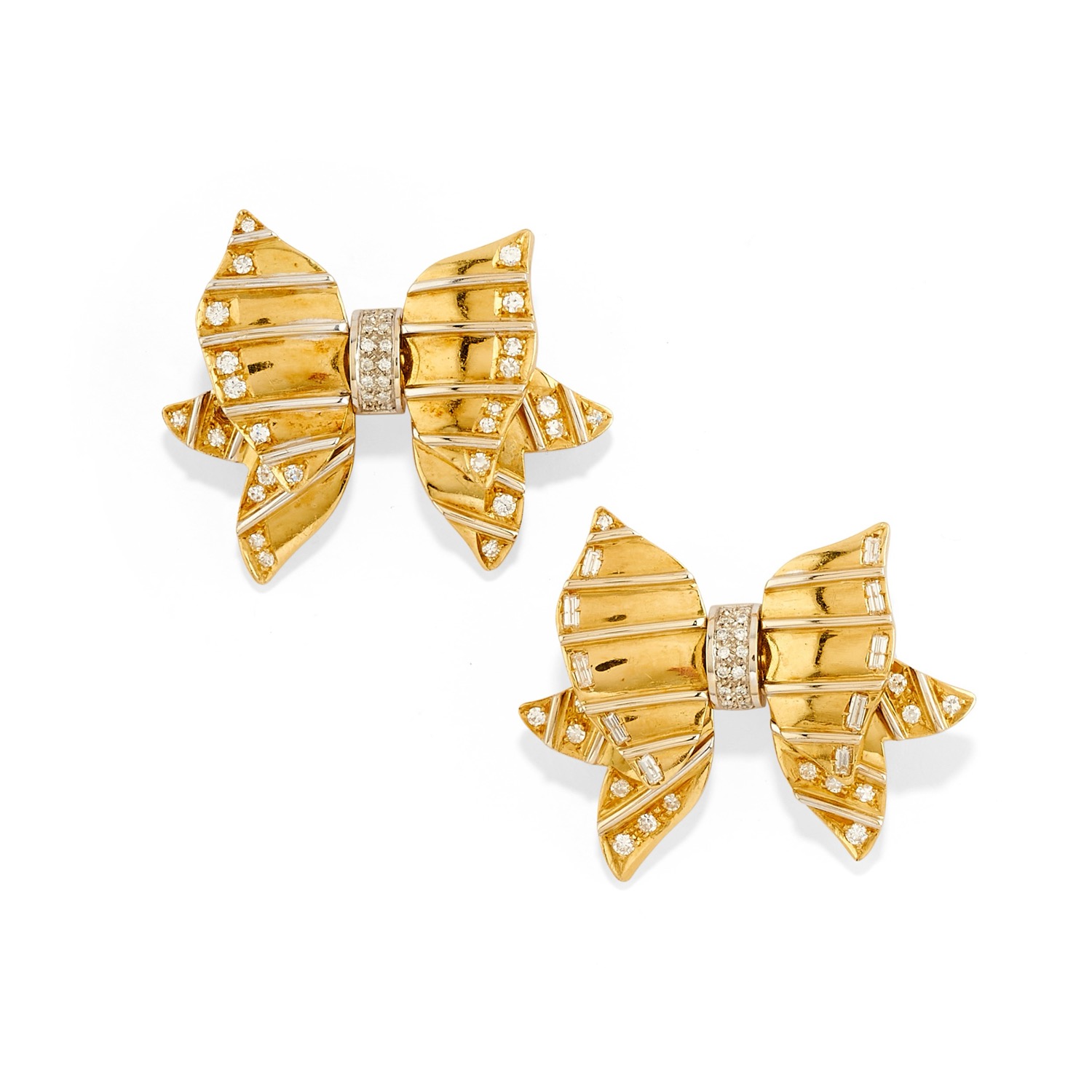 a fiocco, impreziosite da diamanti taglio brillante, huit-huit e baguette.