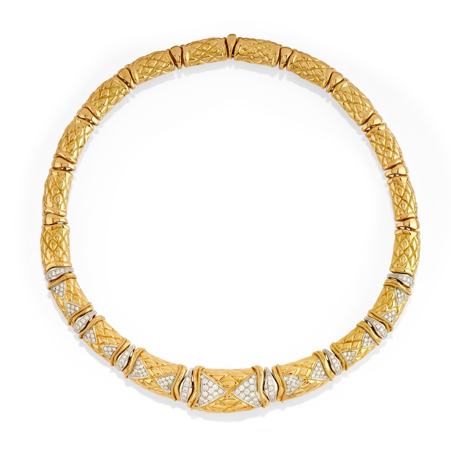 a girocollo, con motivo trapuntato e decorato da inserti in diamanti taglio brillante per totale ct 3,50/4,00 circa.