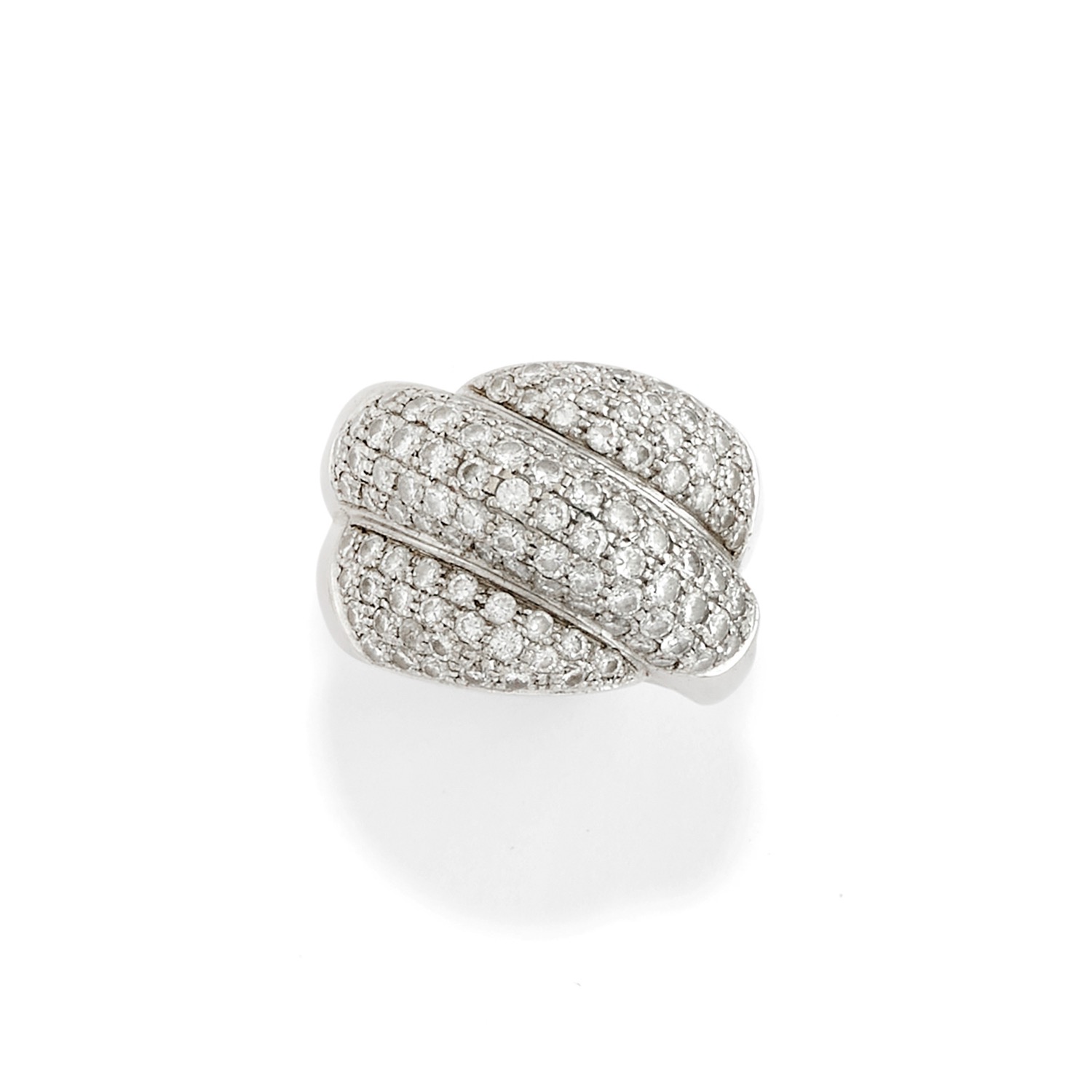 a fascione bombato e intrecciato con diamanti taglio brillante a pavè per totale ct 2,00 circa.