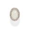 al centro opale taglio ovale cabochon di mm 19,00x12,50 circa entro doppio contorno di diamanti taglio brillante per totale ct 1,50 circa.