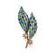 a bouquet, decorate con smalti policromi blu e verdi, fiori in rubini, zaffiri e diamanti e opale taglio cuore cabochon.