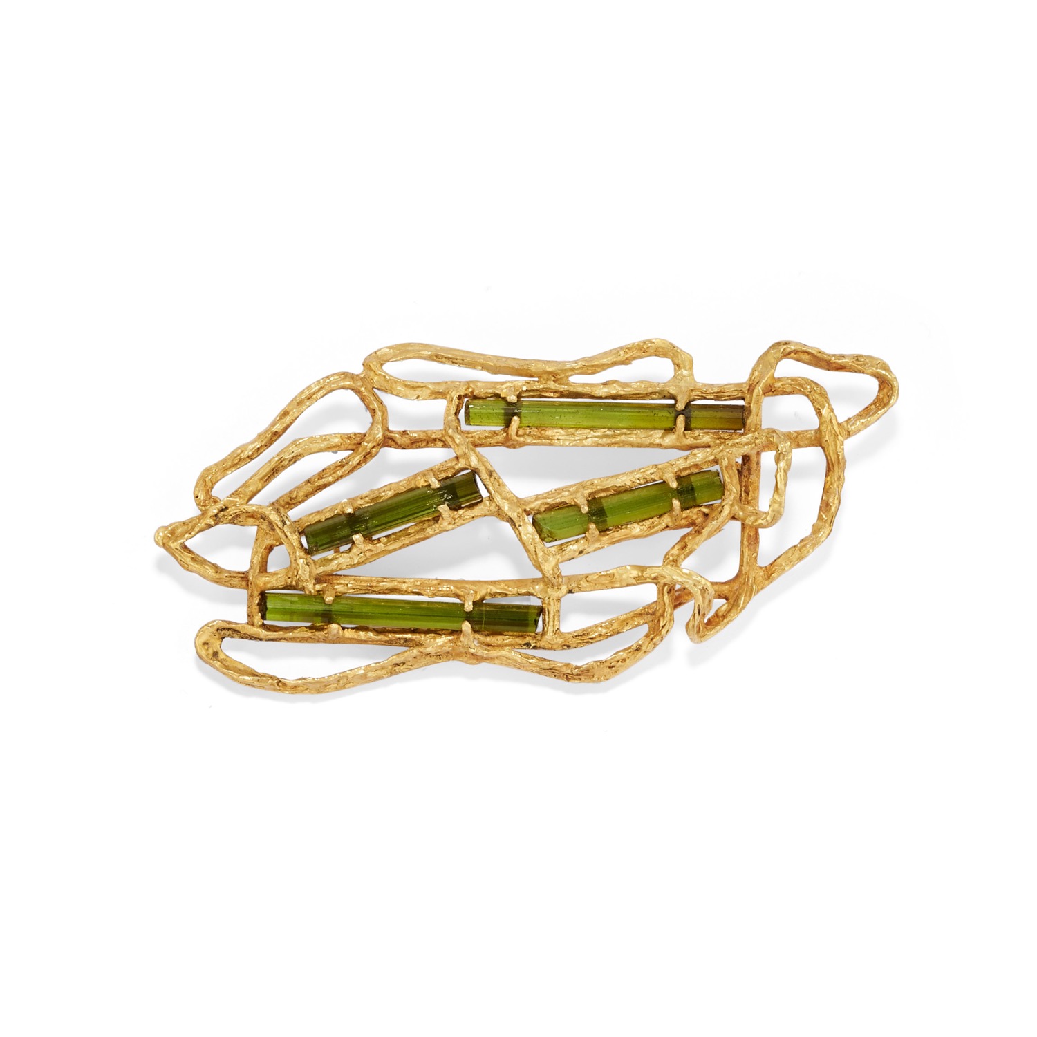 realizzata a intreccio con tecnica di fusione a cera persa, con cristalli di colore verde, firmata dallo scultore Leotta.