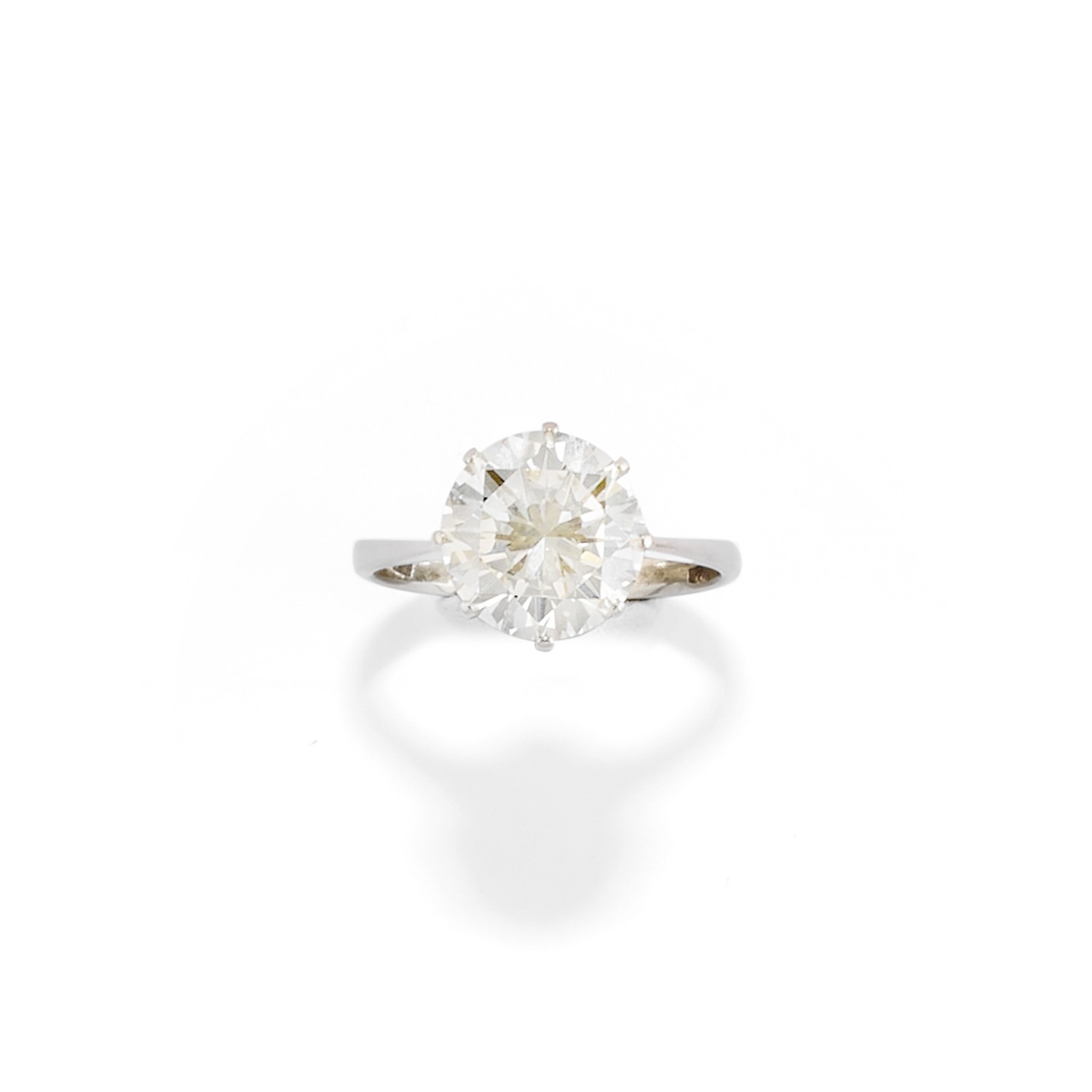 montatura a cestino a otto griffes, con diamante taglio brillante di ct 3,50 circa (prob colore O/P purezza VS).