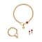composta da collana e bracciale realizzati con maglie ovali, con boules in corniola e diamanti taglio brillante, chiusura a pressione, e orecchini con chiusura a perno e clip, difetti (un perno mancante e una boule con mancanze).