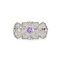 di forma rettangolare, con delicato traforo a motivo floreale impreziosito da diamanti taglio vecchio, rosa e diversi, al centro zaffiro viola taglio ovale.