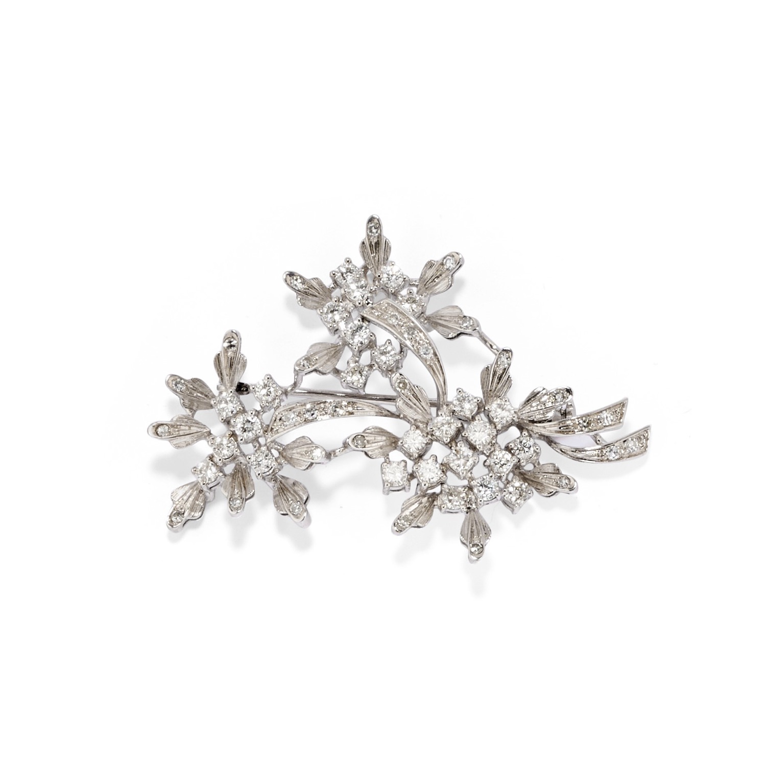 di gusto floreale, con diamanti taglio brillante e huit-huit per totale ct 1,30 circa.