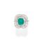 al centro smeraldo taglio rettangolare a contorno ottagonale di ct 1,50 circa, a volute in diamanti taglio tapered baguette per totale ct 1,00 circa.