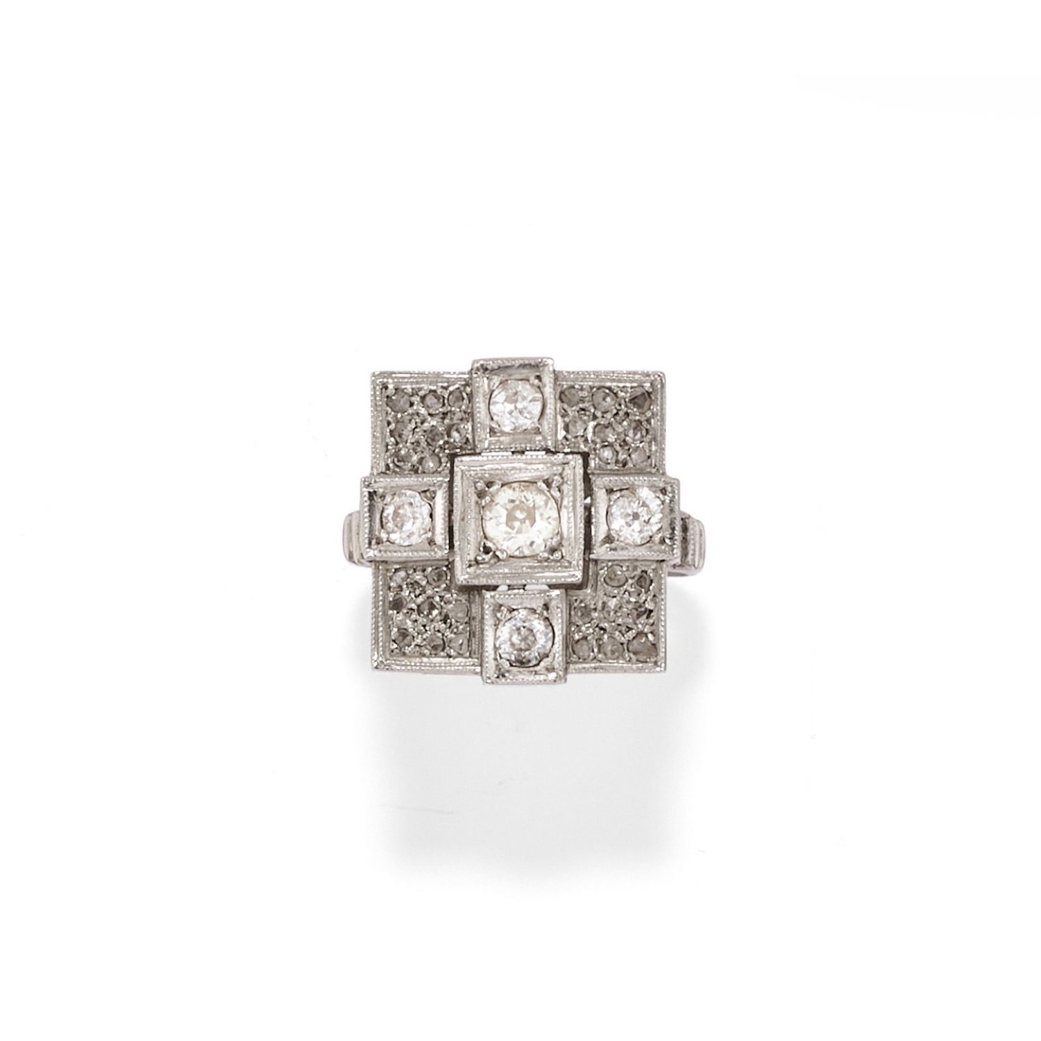 di forma quadrata, decorato da diamanti taglio vecchio e rosa.