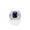 a cupola, con zaffiro taglio cuscino di ct 2,50 circa e interamente decorato da diamanti taglio brillante e baguette per totale ct 5,00 circa.