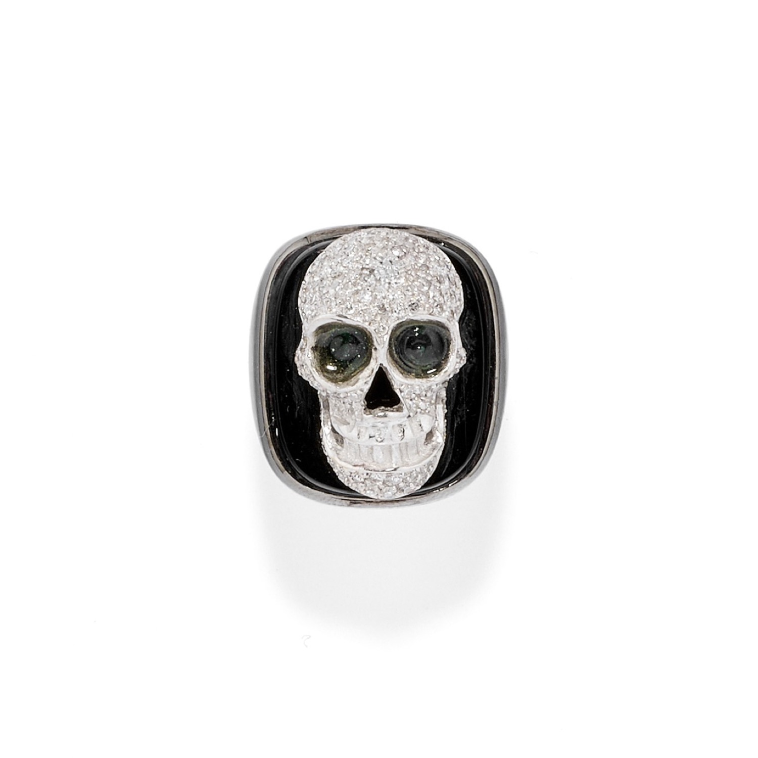 raffigurante teschio, con diamanti taglio huit-huit su base in onice, occhi in smalto.