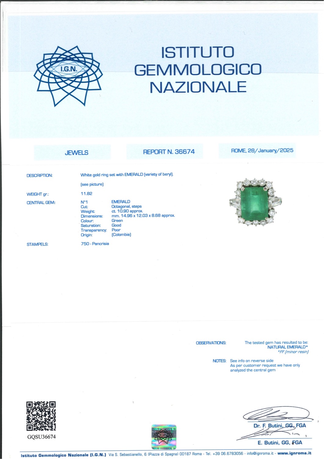 Lo smeraldo è accompagnato da certificato gemmologico n. 36674 del 28/01/2025 IGN, Roma.