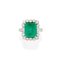 al centro smeraldo di forma rettangolare a gradini di ct 10,90 circa trattenuto ai lati da due diamanti taglio trapezio entro contorno di diamanti taglio brillante per totale ct 1,40 circa.