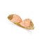 rigido, con corallo rosa scolpito a teste di Bacco che si fronteggiano, impreziosite da foglie con diamanti taglio brillante per totale ct 3,00 circa.