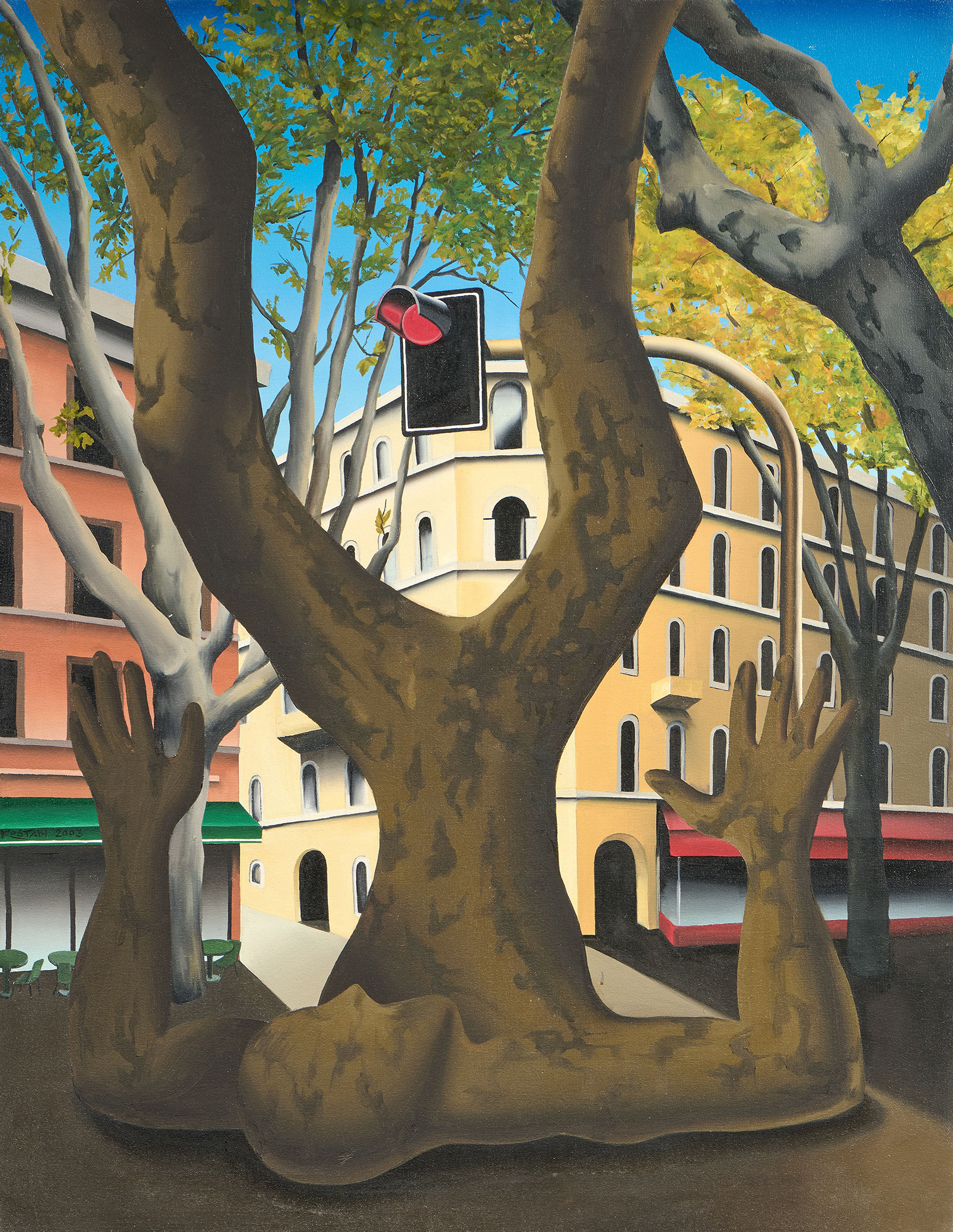 Firma, data e scritta al verso sulla tela: Mark Kostabi / Branching out / 2003 / 6-24-03 Byng, George; sul telaio: etichetta Mark Kostabi / Opera pubblicata / sul volume della / Mostra antologica / Kostabi a Venezia / a pag. 205.