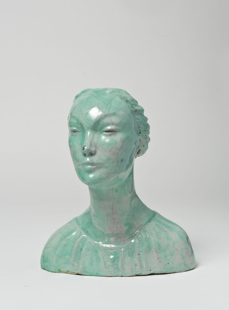 Lotto 281 | Reggiani. Busto di donna smaltata in verde acqua sotto vetrina. Firmata sotto...