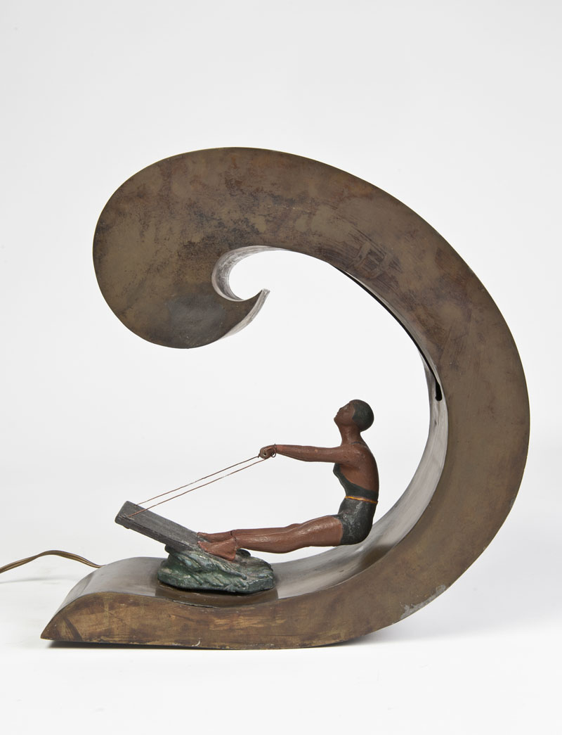 Lotto 282 | Lampada déco in ottone e fusione metallica, raffigurante ragazza che pratica...