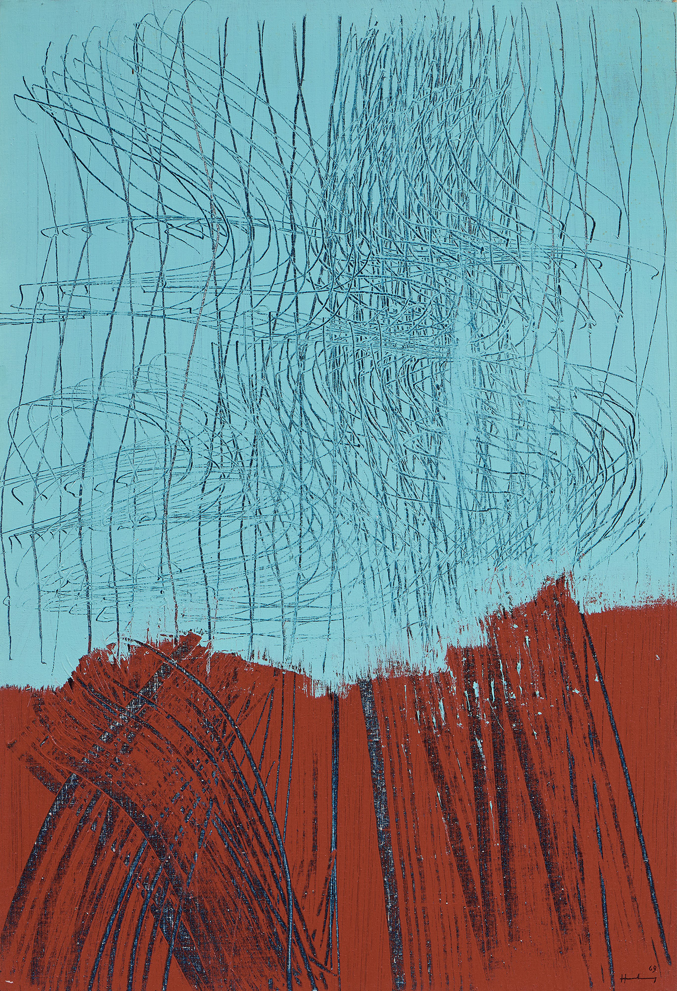 Data e firma in basso a destra: 69 / Hartung; firma, titolo e scritta al verso sul telaio: Hartung T1969-H23 Phot G - 292 / le 9/8/69 / K / 21-8-86: timbro Galerie Daniel Gervis, Paris: timbro Galerie Bodenschatz, Basel.