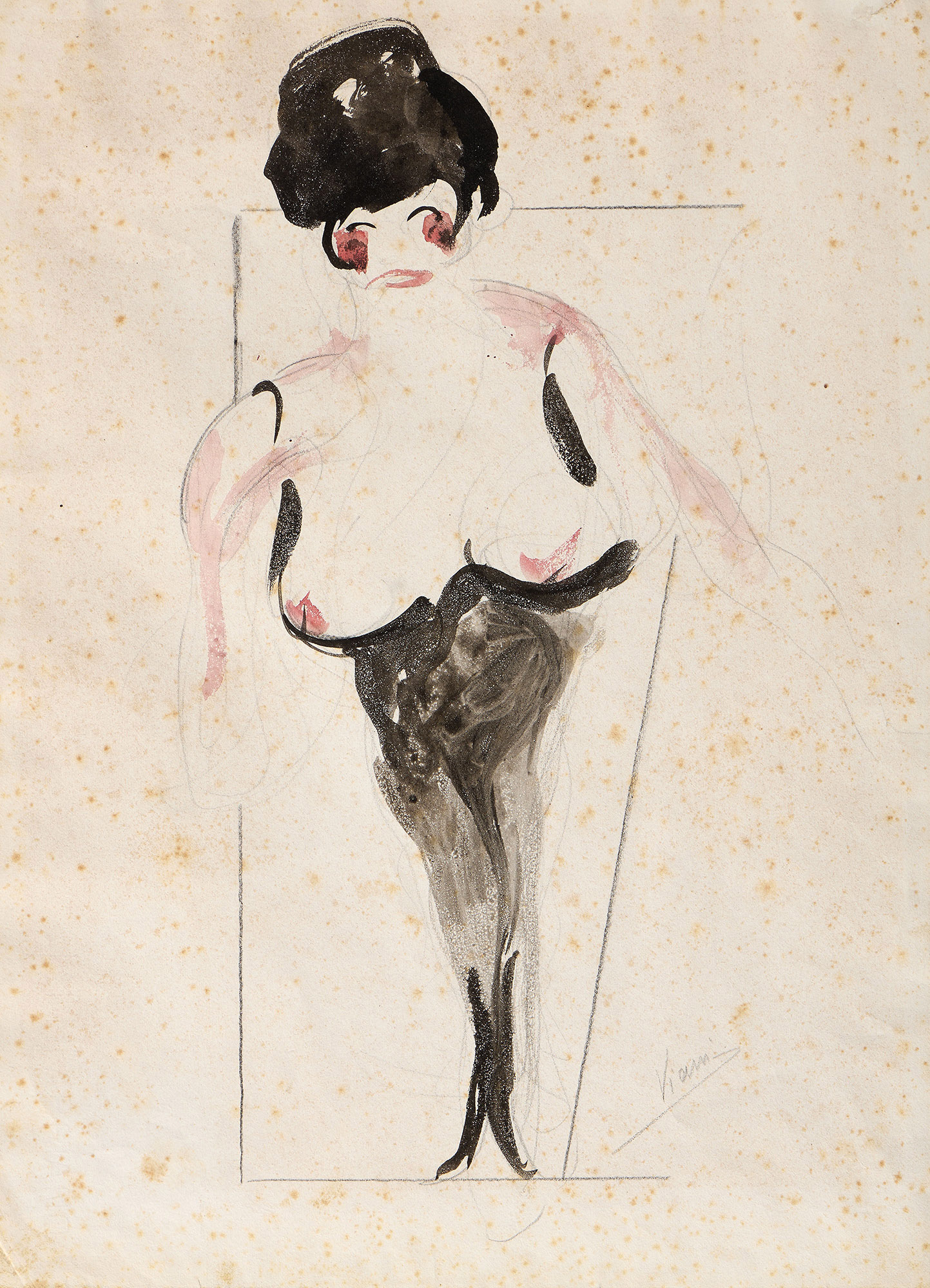 Firma in basso a destra: Viani. Al verso, su un cartone di supporto: timbro Fondazione Viani, Viareggio: etichetta e quattro timbri Galleria d'Arte "La Navicella", Viareggio (con titolo Donna di Parigi).