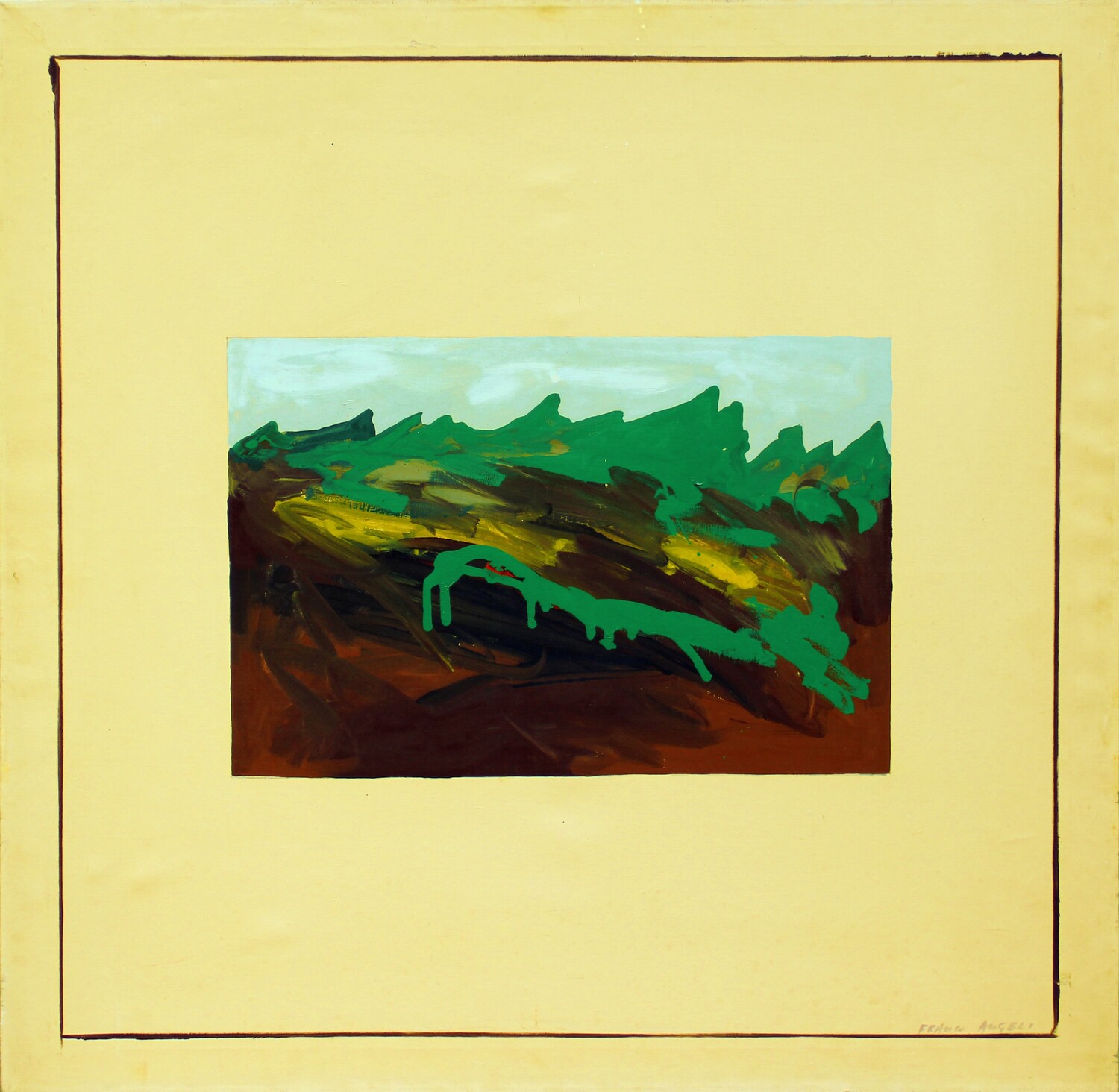 ANGELI Franco, Paesaggio andino; anni '70, smalto su tela, cm 100x100
