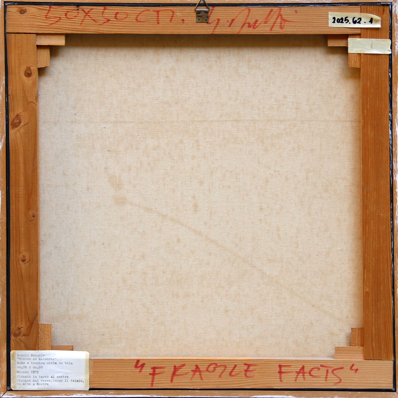 DANGELO Sergio, Fragile facts; 1975, tecnica mista su tela, cm 50x50