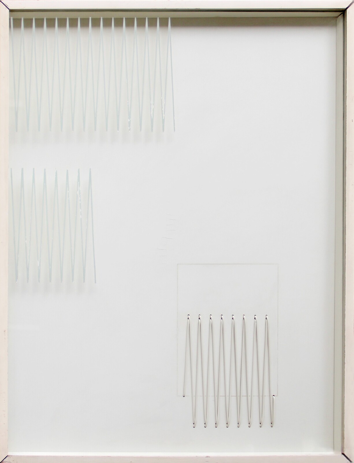 FERRARI Agostino, Città, 1971, elastici e tecnica mista su tavola con vetro dipinto, cm 80,5x60,5