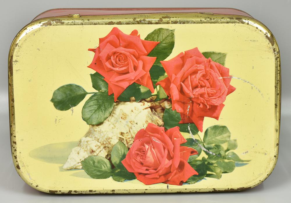 SCATOLA IN LATTA scatola in latta litografata con motivi di piccole rose...
