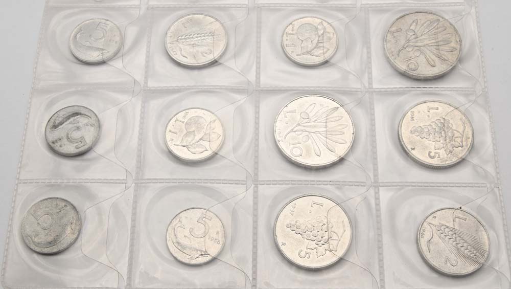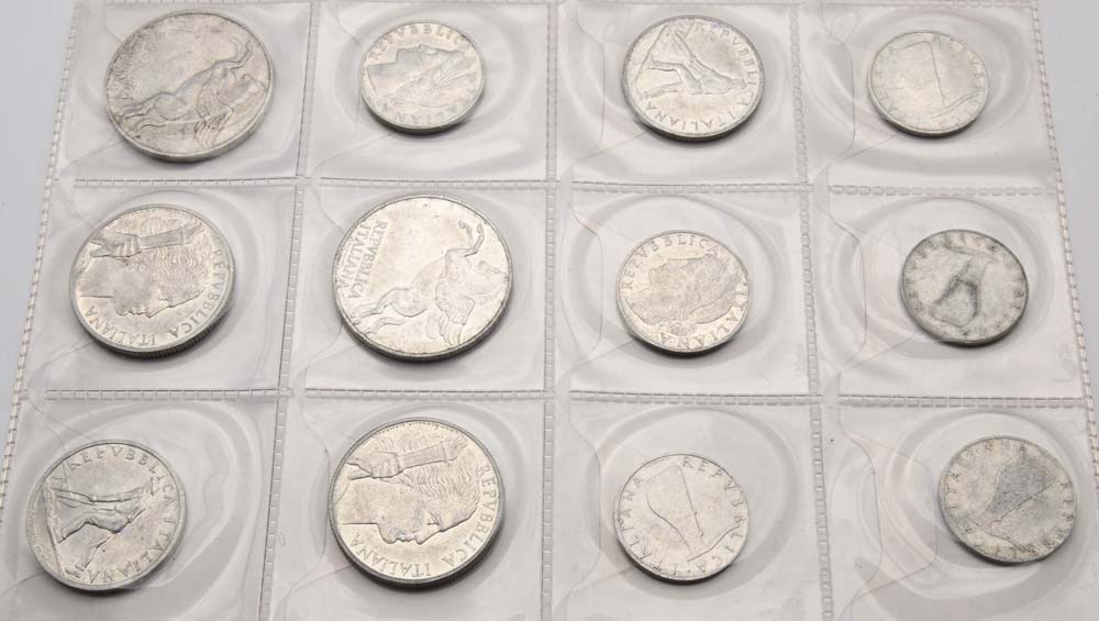 Lotto 10, 5, 2 Lire, e 1 Lira Serie 1946 e 1947; e 4 monete da 5 Lire 1956...