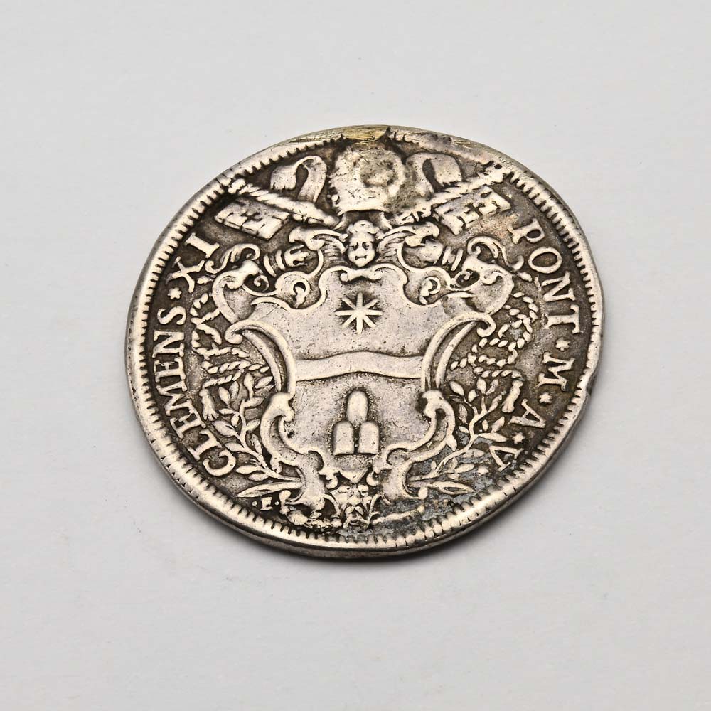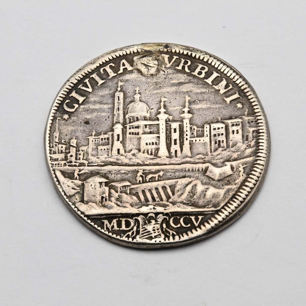 Lotto 646 | Mezza Piastra con la veduta di Urbino A.V 1705 Clemente XI (foro otturato e...