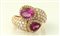 ANELLO. In oro rosa 18 kt con disposizione a contrariè, rubelliti taglio ovale e goccia per tot. cts. 2,00 ca. e diamanti taglio brillante per tot. cts. 1,60 ca.