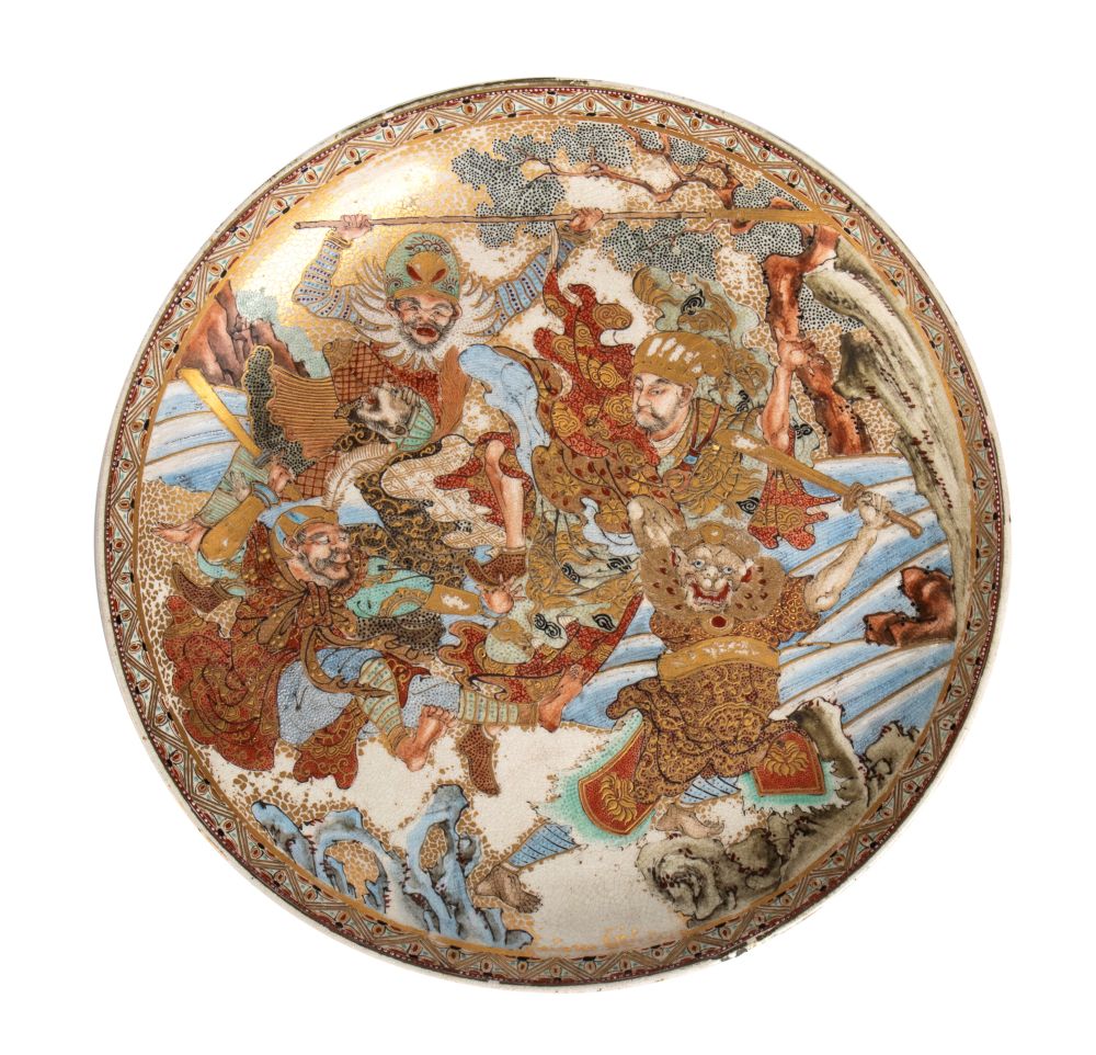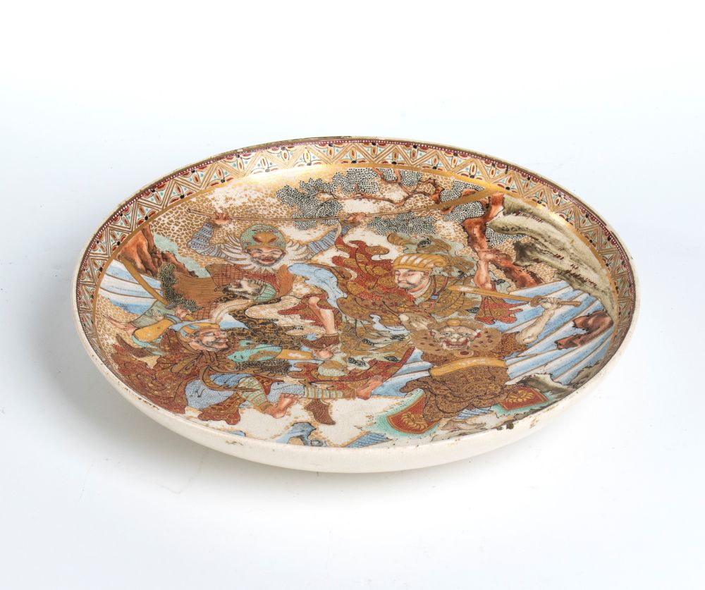 Piatto Satsuma decorato con scena di battaglia Giappone, periodo Meiji (1868-1912)