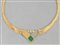 COLLANA. In oro giallo 18 kt maglie costolate alternate a lisce, motivo centrale geometrico con smeraldo taglio rettangolare a contorno ottagonale di cts. 4,50 ca. e diamanti taglio brillante per tot. cts. 0,60 ca. a decoro.