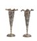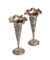 Alt.: 23 cm Coppia di alti vasi argentati dal corpo affusolato a forma di tromba e bordo svasato ondulato, finemente lavorati a rilievo con scene di caccia e animali selvatici.