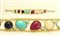 BRACCIALE. In oro giallo 18 kt maglia ad anelli con al centro gemme multicolor taglio cabochon ed inserti in diamanti taglio brillante per tot. cts. 0,80 ca.