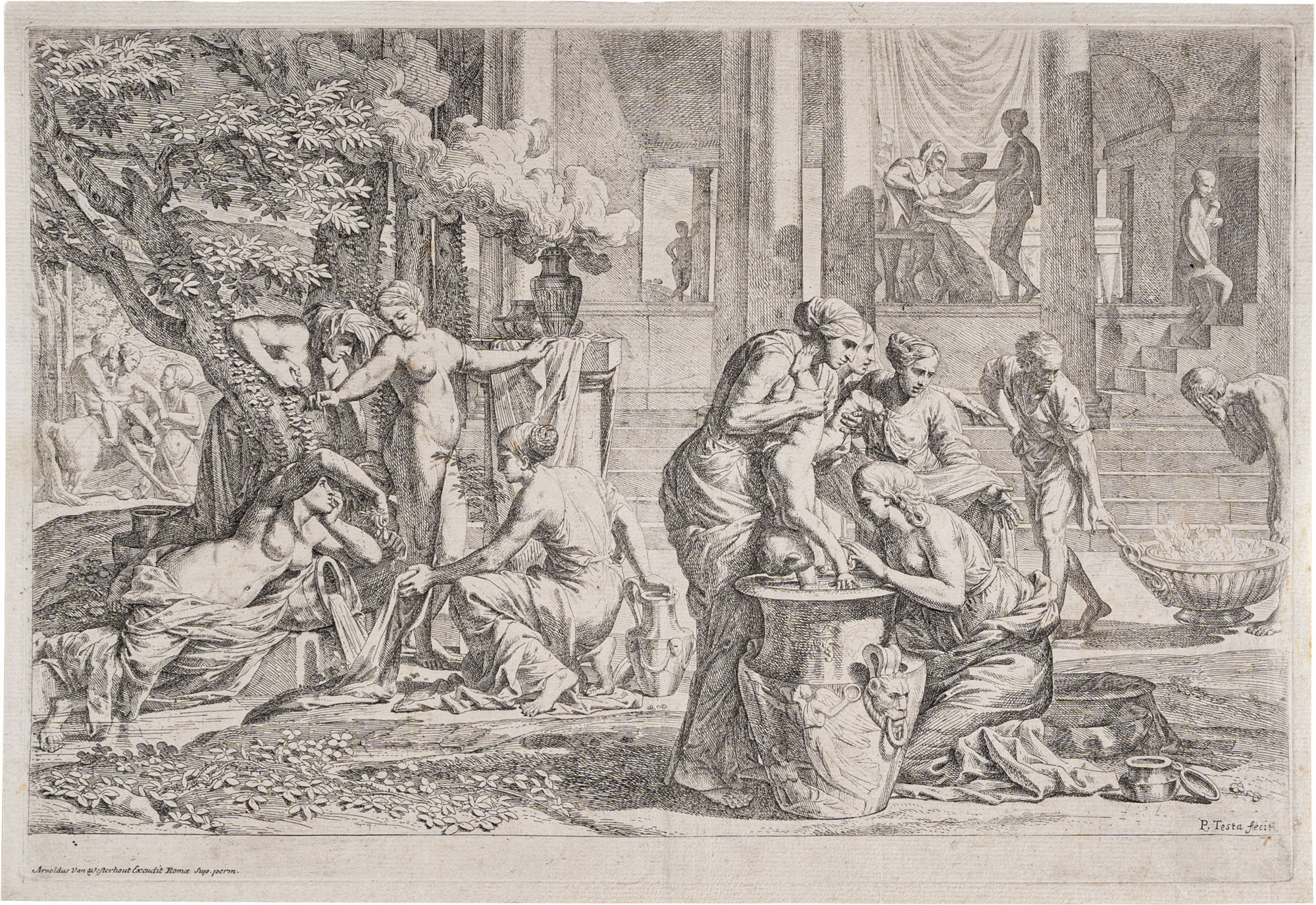 Arnold van Westerhout (Anversa, 1651 - Roma, 1725) da invenzione di Pietro Testa detto il Lucchesino (Lucca, 1612 - Roma, 1650) - Teti immerge Achille nell'acqua dello StigeAcquaforte29,1 x 43 cmTiratura tarda