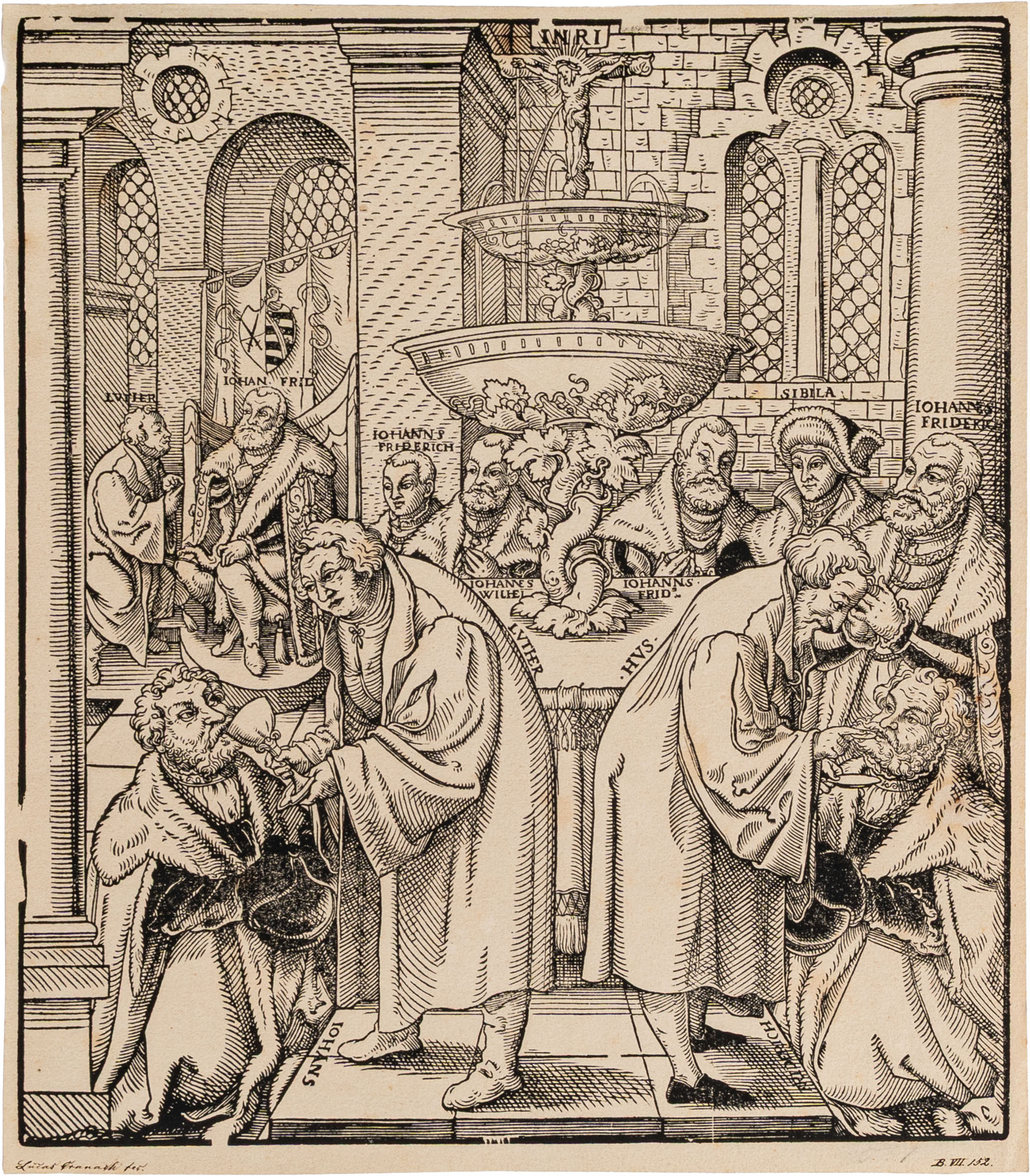 Lotto 26 | Lucas Cranach il Vecchio (Kronach, 1472 - Weimar, 1553) - I riformatori Lutero e Hus che danno la comunione ai principi della casa di Sassonia