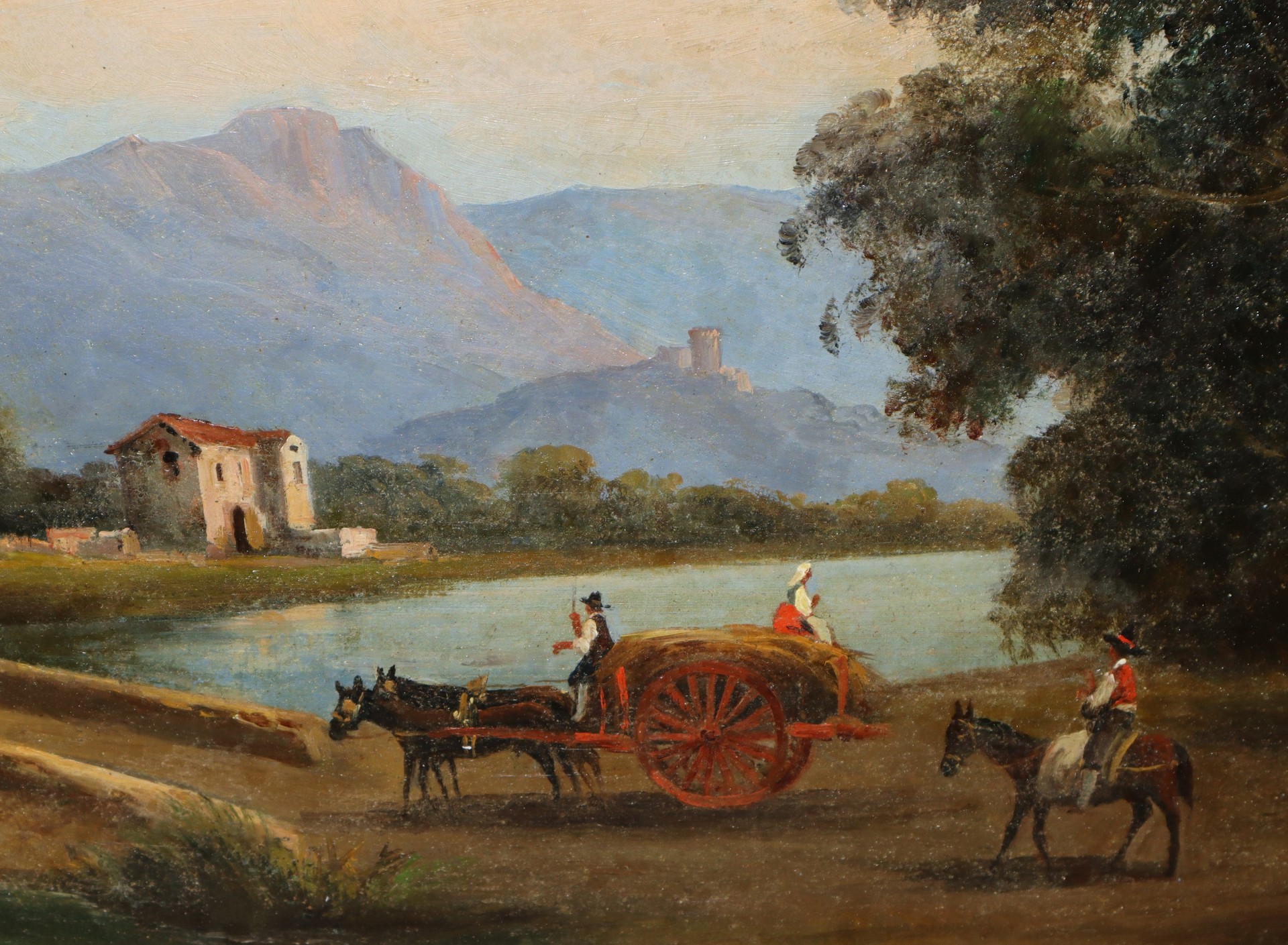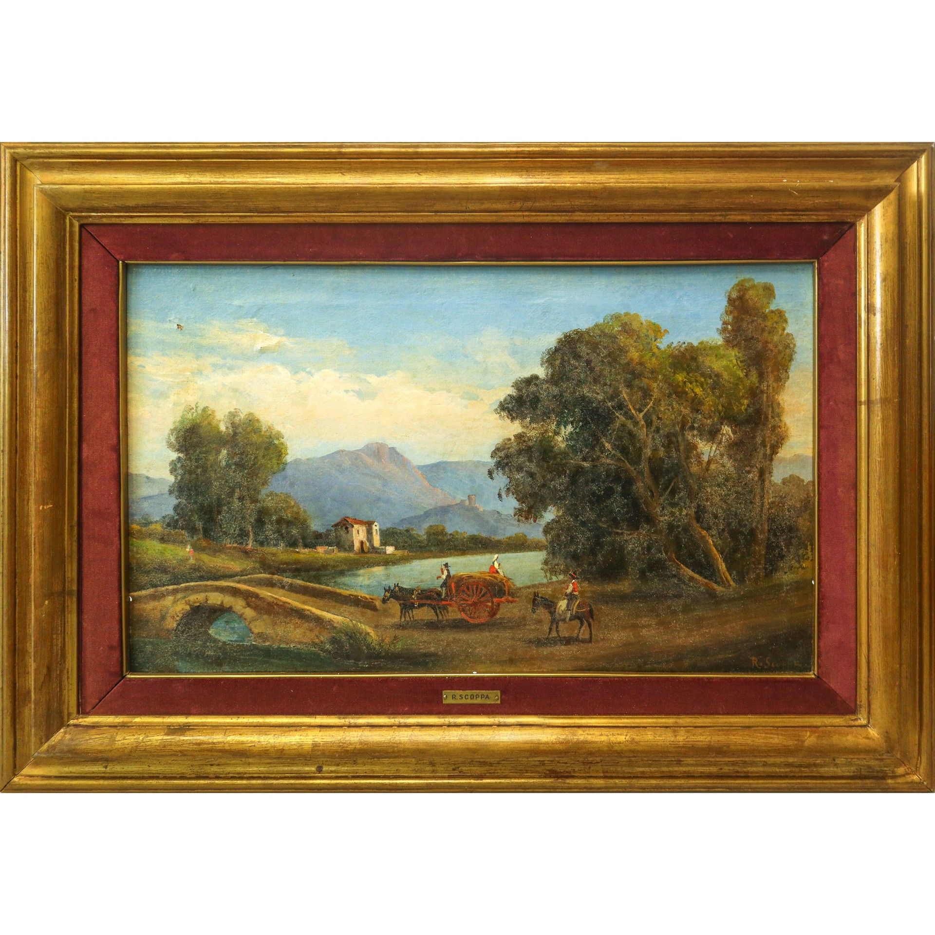 Raimondo Scoppa (Napoli 1820 - Napoli 1890) - Paesaggio fluviale con ponte h cm 46X70 in cornice 60X84 Firmato in basso a destra. Lieve caduta di colore in alto a destra Firmato in basso a destra. Lieve caduta di colore in alto a destra