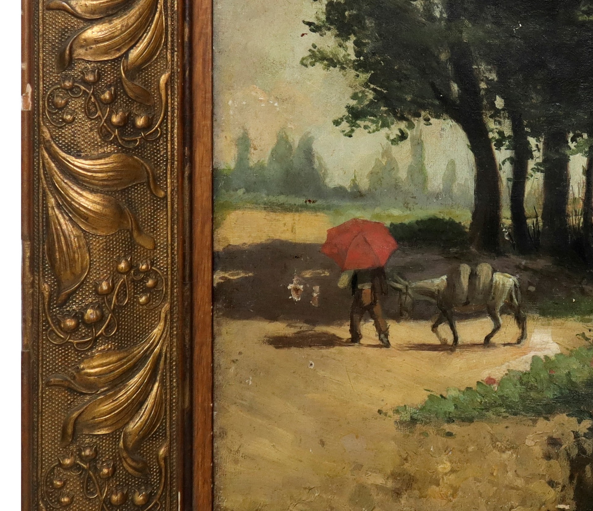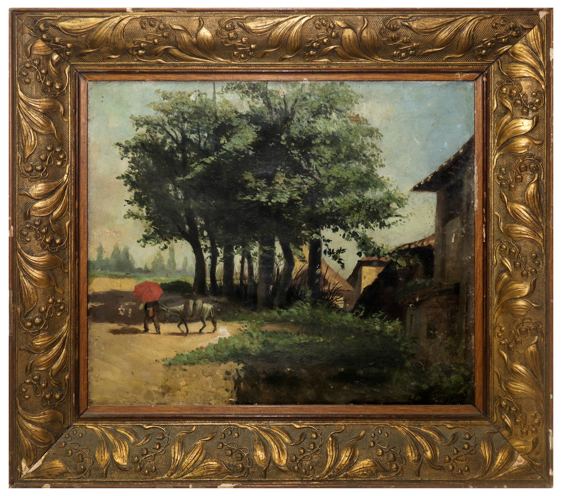 Lotto 12 | Paesaggio con case e alberi e uomo con asino, 19° secolo