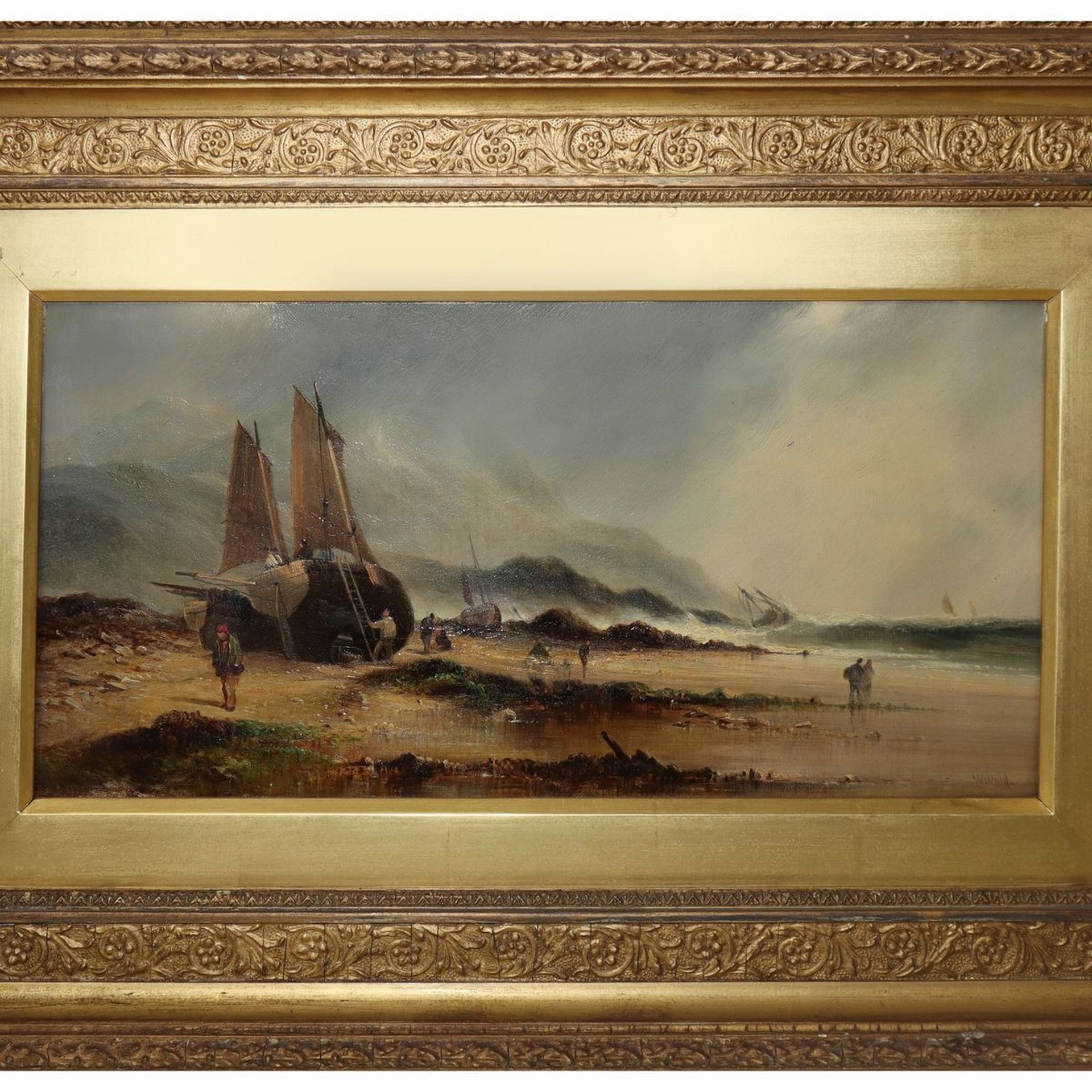 Lotto 14 | Tempesta con navi in mare, a secco e personaggi, 19° secolo