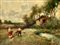 Paesaggio campestre con personaggi